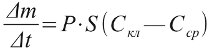 Проницаемость клетки характеризуется скоростью прохождения веществ через клеточную поверхность, так называемым коэффициентом проницаемости (P). Он измеряется количеством вещества (Δm), которое проходит через единицу клеточной поверхности (S) за единицу времени (Δt) при разности концентраций данного вещества между клеткой и средой (Скл — Сср), равной единице: