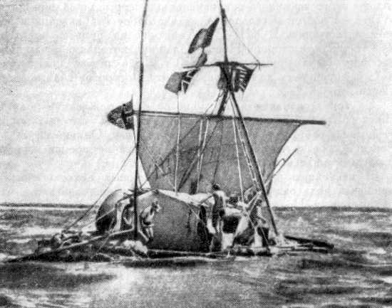 Огромная заслуга Т. Хейердала состоит в том, что он доказал возможность плавания на бальсовых плотах из Перу в Полинезию.