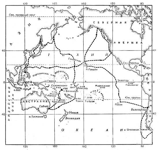 По следам Кука в Тихий океан ринулось множество мореплавателей, и за последнюю четверть XVIII в. и первые годы XIX в. в водах Океании и Австралии побывало больше кораблей, чем за предыдущие два с половиной столетия.