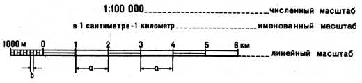Именованный масштаб — пояснение, указывающее соотношение длин линий на карте и на местности. При М= 1:100 000 1 см на карте соответствует 1 км.
