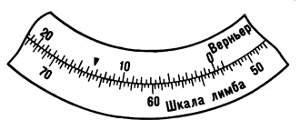 Рис. 74. Отсчет по лимбу и верньеру: 53°33'30''