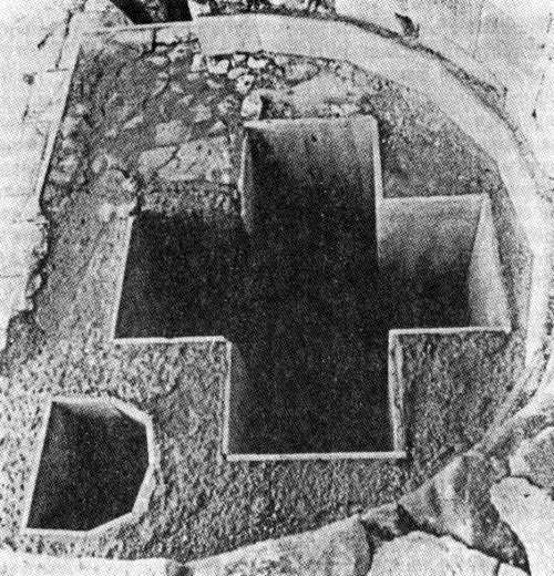 Крестообразная купель с дополнительной чашей. Авдат (Палестина), северная церковь. IV в. (DA. Vol. XI)