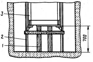 Рис. 2.15. Установка каркаса противовеса: 1 — деревянная подставка; 2 — направляющая; 3 — каркас противовеса