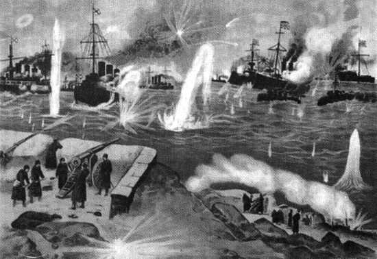 Осада Порт-Артура японцами началась в мае 1904 г. В ожесточенных боях на подступах к Порт-Артуру в мае-июне японцы потеряли 12 тыс. человек убитыми и ранеными, русские 5,3 тыс. Ко времени подхода противника к Порт-Артуру район крепости был значительно укреплен. Её гарнизон составляли 40 тыс. солдат. Личный состав эскадры насчитывал 12 тыс. человек. Ведущую роль в защите крепости сыграл командующий её сухопутной обороной генерал-лейтенант Р.Н. Кондратенко, пользовавшийся большим авторитетом среди солдат и офицеров.