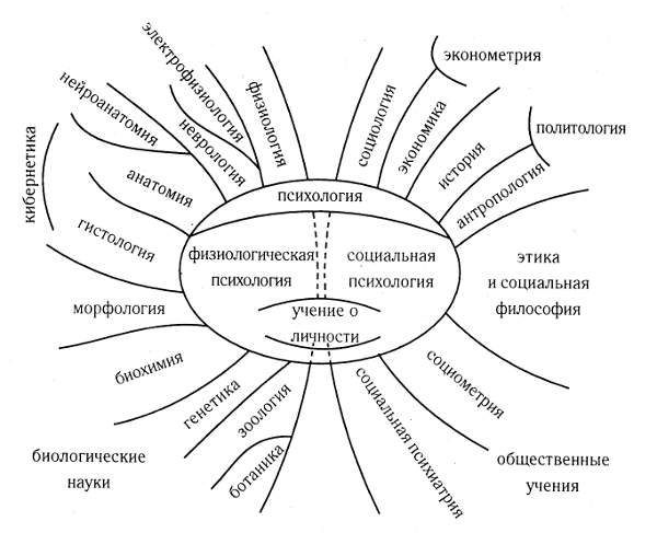 Мы можем начать прежде всего с рассмотрения места психологии как целого среди наук. Мы обнаружим, что ее исключительная важность происходит из того факта, что она представляет собой вид моста между двумя очень большими и важными группами дисциплин. С одной стороны, она тесно связана с биологическими науками: неврологией, анатомией, биохимией, зоологией, генетикой и так далее. Многие ее теории основаны на данных этих наук, и любое их достижение немедленно отражается на психологических исследованиях и построении теорий. С другой стороны, на глубинном уровне психология связана с общественными учениями: социологией, экономикой, историей, антропологией, социальной философией, психиатрией и так далее. Иногда их называют общественными науками, но мне кажется, что при их сегодняшнем уровне развития термин «наука» слегка вводит в заблуждение в применении к областям, которые в большей степени характеризуются рассуждениями и слепым эмпиризмом, чем экспериментально выведенными законами общей применимости. Однако очевидно, что эти столь различные области знания весьма сильно зависят от существования развитой совокупности знаний, относящихся к поведению людей. Хорошо развитая психологическая наука совершенно необходима и для их развития.