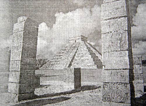 Чичен-Ица наиболее известна своими пирамидами. Одна из них - пирамида Кукулькана, или храм Кецалькоатля. В мифологии майя прародиной этого народа называются Гора Змея и Равнина Тростников, или Коатерек и Толлан. Пирамида Кукулькана (Кецалькоатля) символизировала Гору Змея, поскольку этот бог выступал в роли «пернатого змея». Коротко говоря, именно в Чичен-Ице мы окончательно осознаем, что пирамиды майя действительно связаны с Кецалькоатлем, но сами они символизируют Гору Змея. «Змеиный подтекст» заметен сразу, поскольку изображение этого пресмыкающегося вырезано на всех сторонах пирамиды.