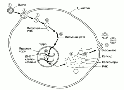 Рис. 2.23. Жизненный цикл вируса иммунодефицита человека (ВИЧ).
