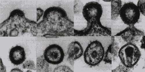 Рис. 2.24. ВИЧ, покидающий инфицированную клетку.