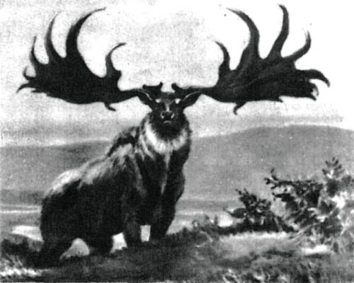 Рис. 69. Гигантский лось, живший в ледниковую эпоху в лесах северного типа на востоке Северной Америки.
