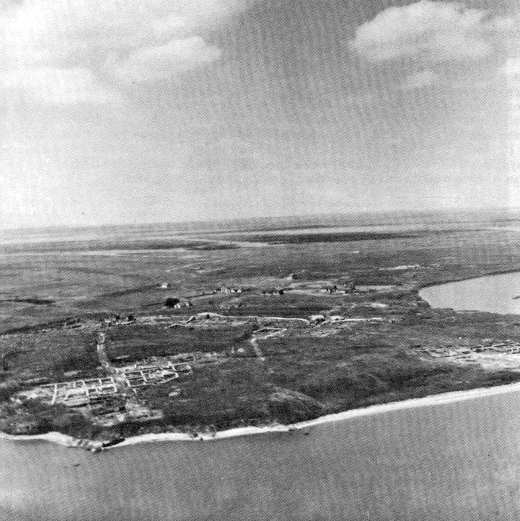 Фото 16. Некоторые античные города были погребены под речным илом, в особенности те, которые располагались вблизи устьев больших рек. На фотографии, сделанной с самолета, виден римский город Истрия на побережье Черного моря к югу от дельты Дуная (фото Д. Кукаловой)