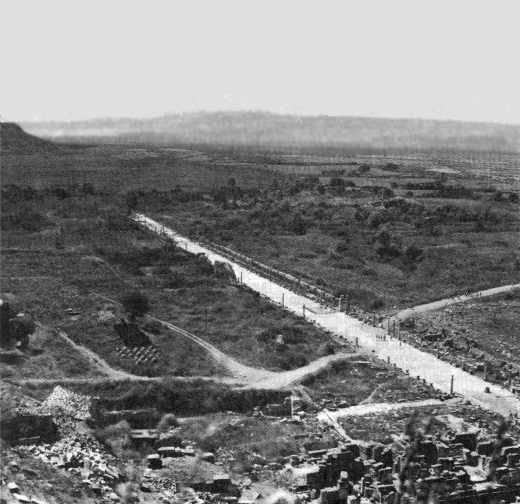 Фото 18. Некоторые порты и процветавшие города были уничтожены не в результате погружения под поверхность воды, а наоборот, в результате удаления от берега моря. Именно такая судьба постигла знаменитый Эфес, развалины которого находятся ныне южнее турецкого города Измира. На снимке видна дорога, которая 2500 лет назад вела прямо в порт. Сегодня она кончается в 4 км от берега. Виной тому река Мендерес (древний Меандрос), которая отложила мощный слой ила на примыкавшей к устью территории (фото Д. Кукаловой)