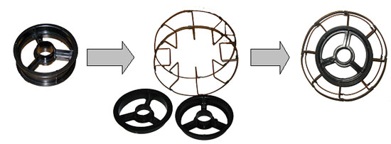 Адаптер предназначен для установки проволочных еврокассет на полуавтоматы с тормозными устройствами, соответствующие евростандарту. Адаптер состоит из двух одинаковых складывающихся частей, которые позволяют быстро устанавливать сварочную проволоку намотанную на проволочную еврокассету в полуавтомат. Адаптер изготовлен из материала – полиамид.