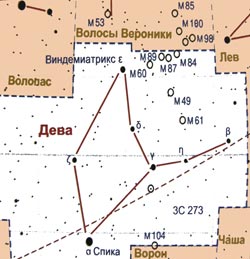 В созвездии Девы есть еще один интереснейший астрономический объект. Это самый яркий квазар под номером ЗC 273, находящийся на расстоянии почти двух миллиардов световых лет от Земли. Наблюдая квазары, мы видим свет, который они излучали в то время, когда на Земле еще только зарождалась жизнь.