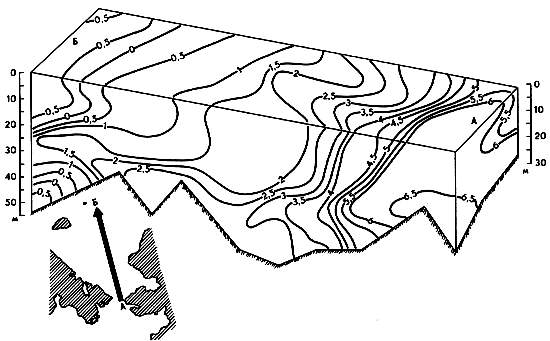 Изменчивые во времени и в пространстве ветры, различное вертикальное распределение плотности во многом определяют условия и возможности развития перемешивания в море. В весенне-летнее время на свободных ото льдов пространствах моря воды заметно расслоены по плотности, и относительно слабые ветры перемешивают лишь самые верхние слои до горизонтов 5— 7 м. Такая же глубина ветрового перемешивания в приустьевых районах. Осенью вертикальная стратификация вод ослабляется, а ветры усиливаются, поэтому ветровое перемешивание проникает до горизонтов 10—15 м. Глубже его распространению препятствуют значительные вертикальные градиенты плотности. Эта картина особенно характерна для западной части моря. Устойчивую структуру вод начинает разрушать осеннее конвективное перемешивание, которое проникает лишь на 3—5 м ниже ветрового перемешивания. Сравнительно немного (до 5 м) увеличивается толщина верхнего однородного слоя за счет осенней термической конвекции. Только к концу зимы на глубинах 40—50 м (которые занимают около 90% площади Чукотского моря) зимняя вертикальная циркуляция распространяется до дна. На более значительных глубинах вентиляция нижних слоев происходит при сползании вод вниз по склонам дна.