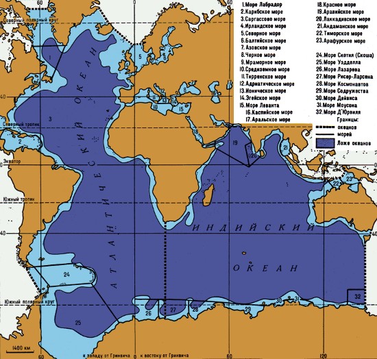 Границы морей Атлантического и Индийского океанов