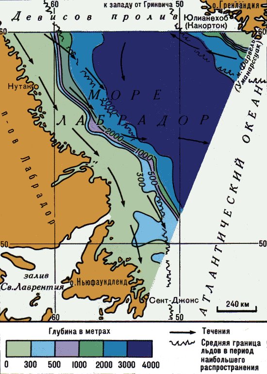 Рельеф дна и течения моря Лабрадор