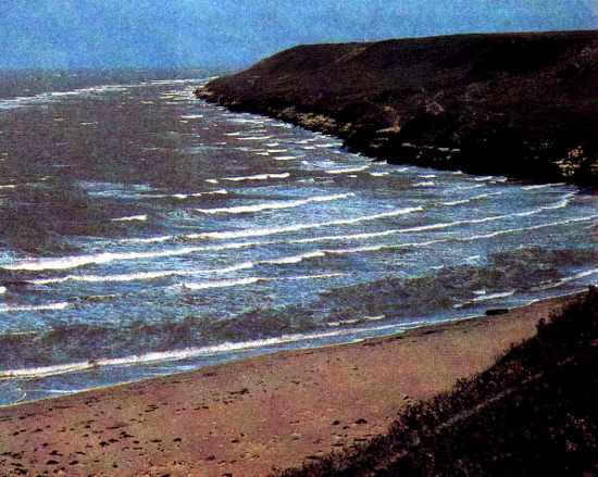 Азовское море — самое мелководное и одно из самых маленьких морей мира. Его площадь — 39 тыс. км2, объем воды — 290 км3, средняя глубина — 7 м, наибольшая глубина — 13 м.